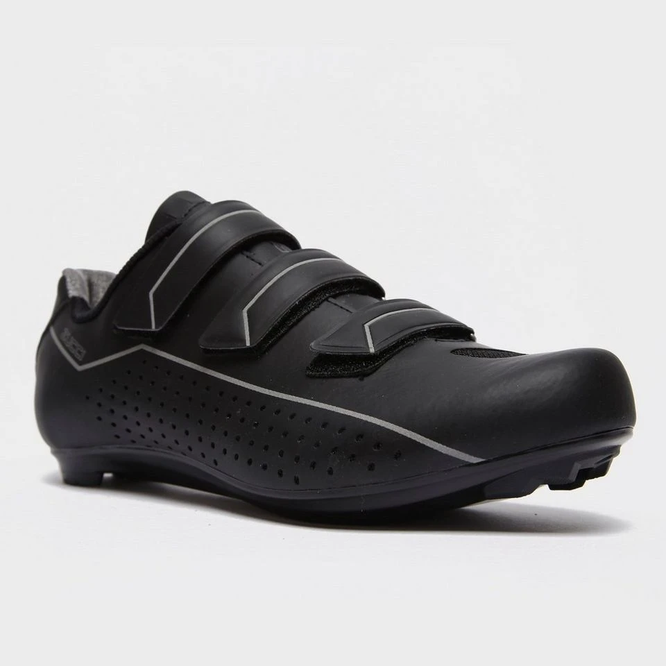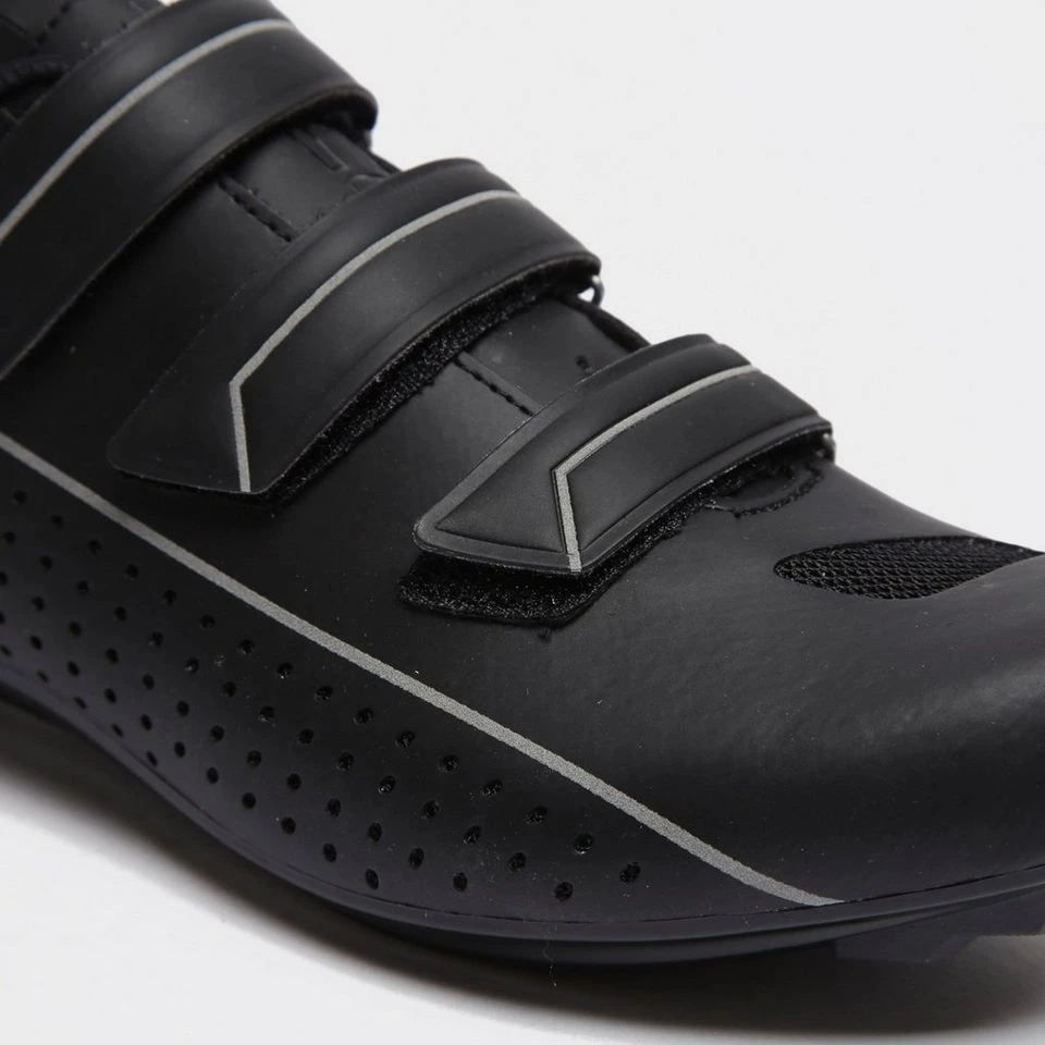 A breathable road shoe with Velcro closure and a three bolt pattern on the sole for easy pedal compatibility.