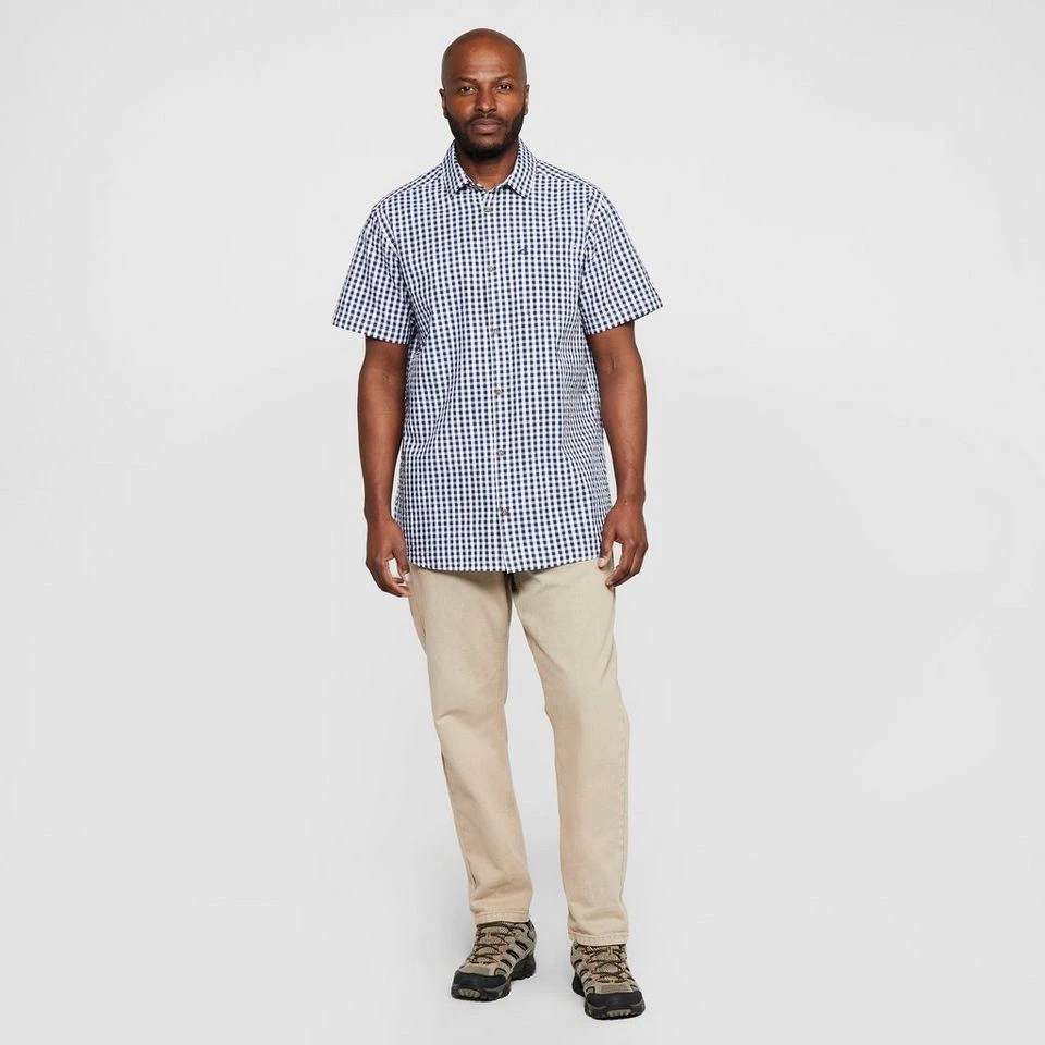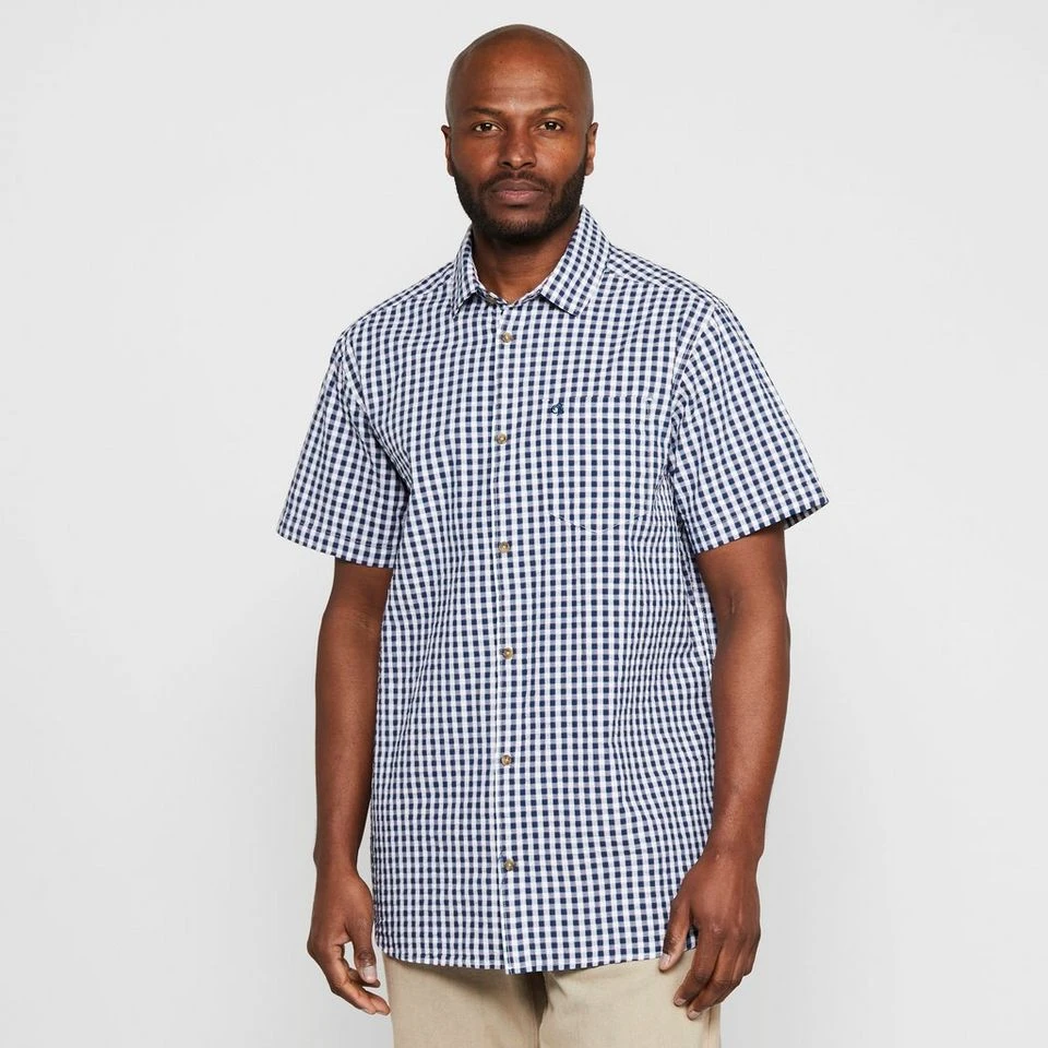 Classic short-sleeved summer shirt with cool-hued cotton checks that make a perfect match for shorts or chinos. Incorporates two pockets and handy sunglasses wipe.