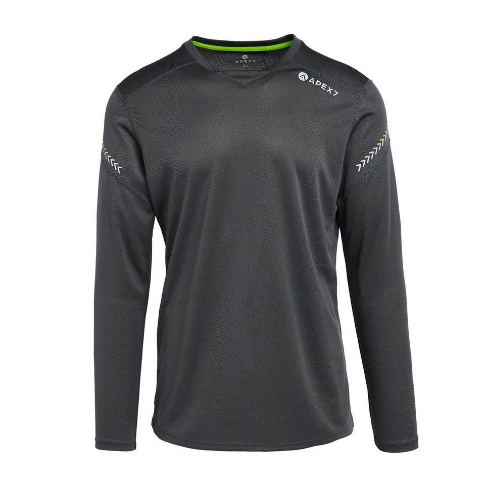 Made from APEX7’s technical polyester fabric, the Lithium riding jersey is designed to breathe and wick-away sweat on the trail to keep you cool, whatever the incline. Flatlock seams add to this technical top’s comfort factor, especially when mountain biking with a backpack. If you’re after a little extra warmth for cool days or some protection from trail-side foliage its long sleeves are a must. The Lithium Jersey’s “active fit” isn’t baggy but leaves enough room for unrestricted movement on the bike. Reflective APEX7 branding is a nice touch for night riders and bike commuters.