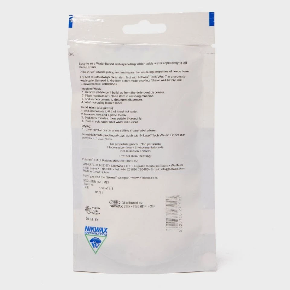 Nikwax Polar Proof ® is a wash-in formula that adds or revitalises a Durable Water Repellent treatment to fleece and midlayers. It is non-flammable and environmentally friendly.,