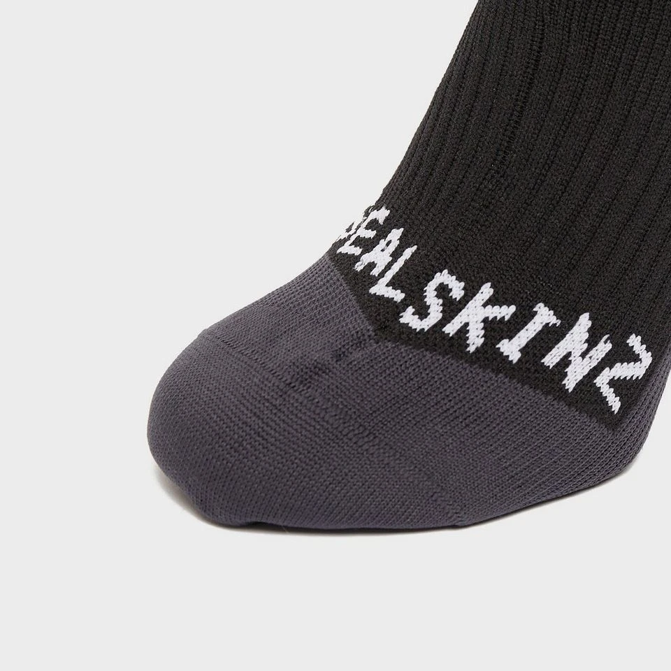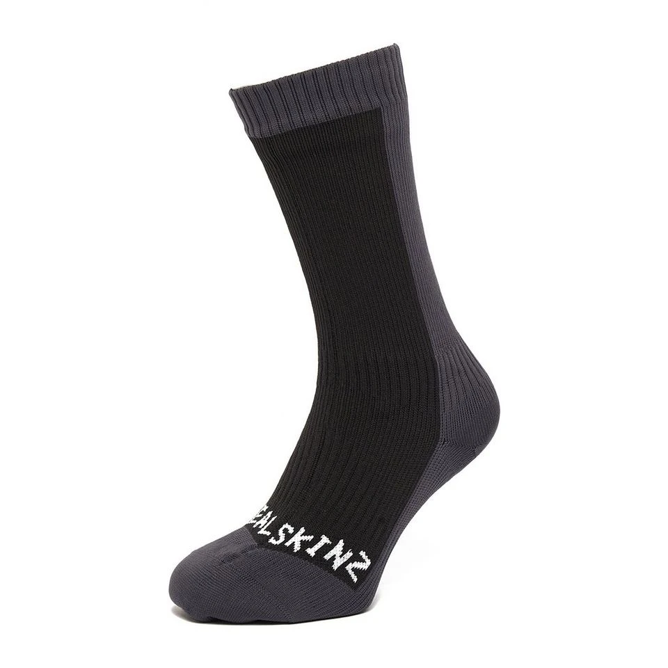 A versatile sock, with exceptional temperature regulation, the Sealskinz Waterproof Cold Weather Mid Length Sock is fully waterproof with a merino wool lining to wick moisture and add comfort. A four-way stretch fit and flat toe seams prevent rubbing and ensure full mobility, taking care of your feet on any terrain.